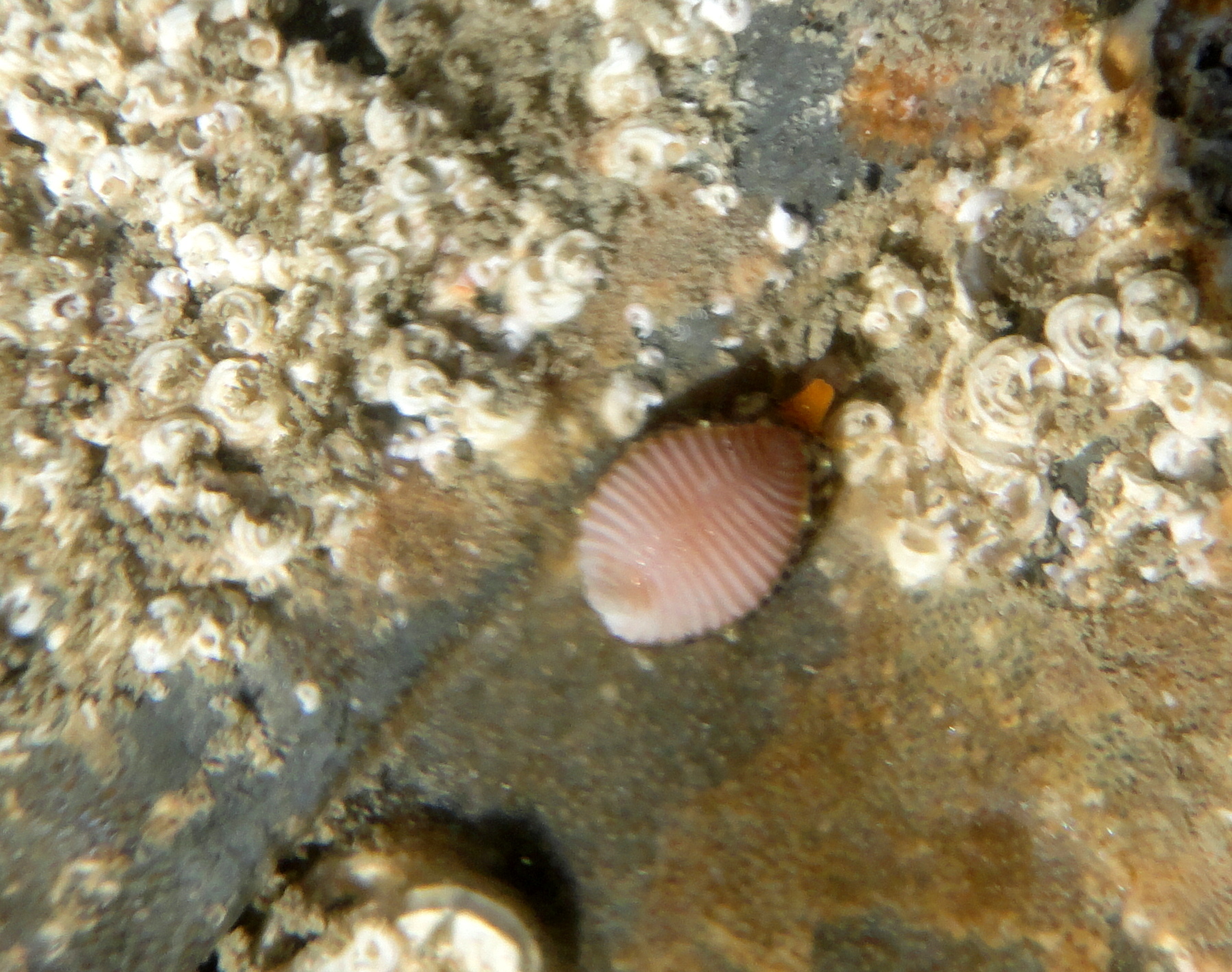 Cup corals love these wave-splashed environments. There must be others around here, but the fierce Atlantic waves rarely give access to the places they might be. These small stony corals close when out of the water. I can make out the ridges of the calcified skeleton and the vivid colours, but the spotted, yellow-tipped tentacles are hidden away.