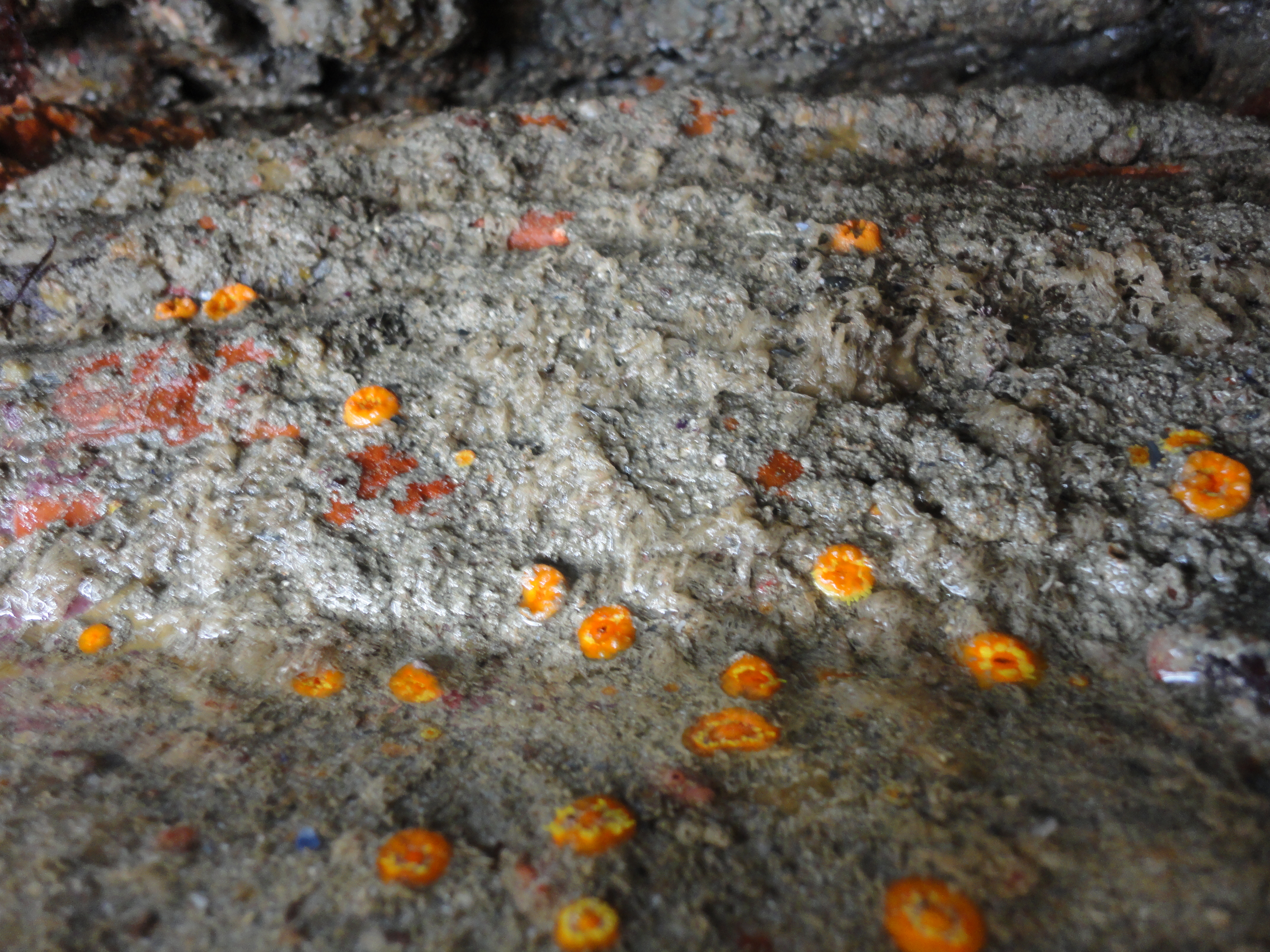 My hair dangles in the pool, seaweed brushes my mouth and my right boot fills with icy water, but nothing will stop me. I count at least 30 cup corals in the nearest part of the entrance, but many more orange blobs sparkle in the darkness further back.