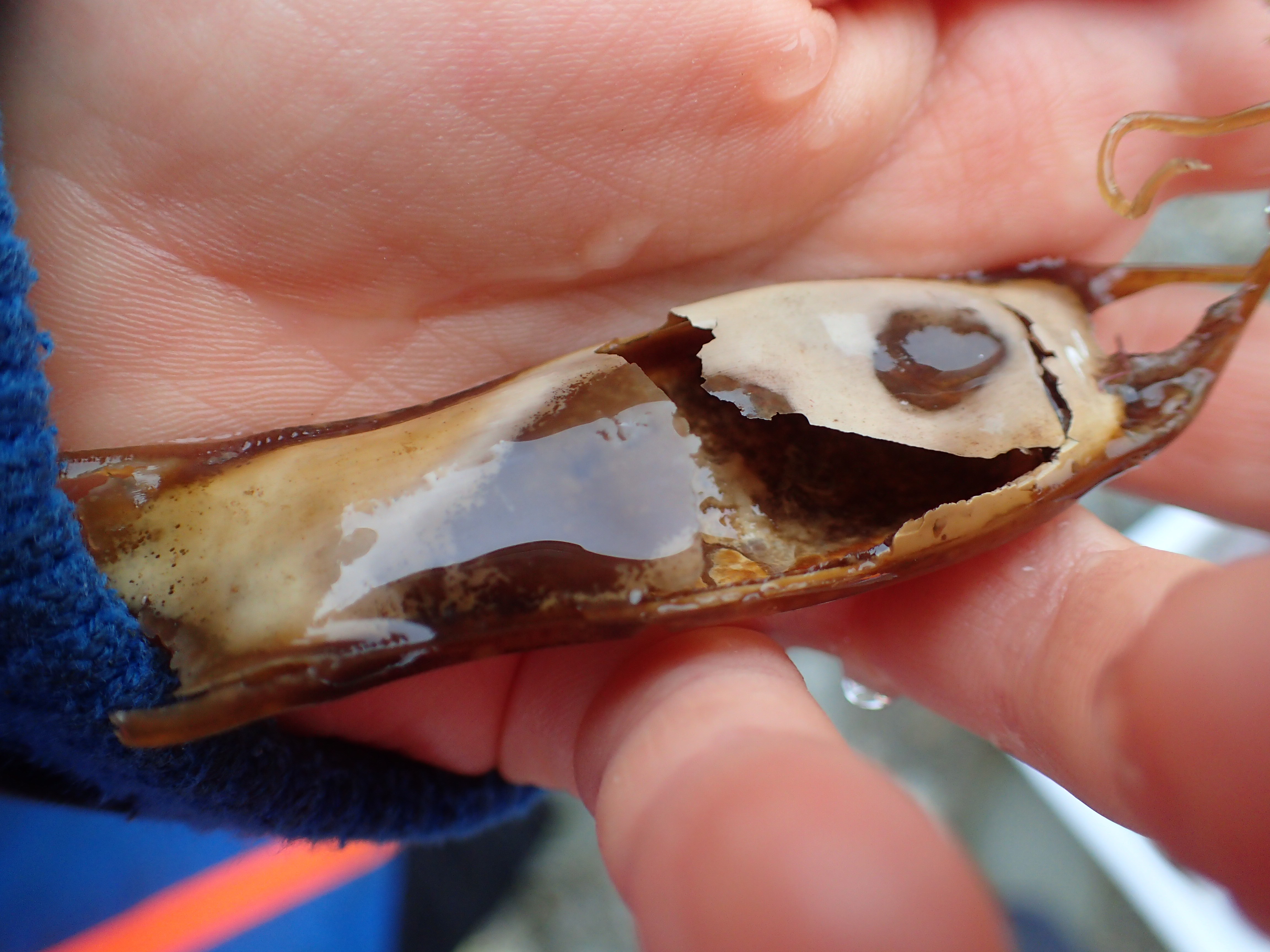 We arrive late and everyone’s already gathered around the shore lab trays, sharing their discoveries. I’m called on straight away to identify a lugworm, its dark slimy body is oozing into a corner of the tray. You’d only have to blow it up to human size to have a classic horror movie monster.