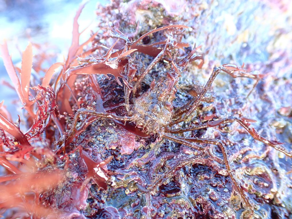 The tide has turned and I am reluctantly preparing to leave one of best rock pooling beaches in Cornwall after a fabulous few hours in perfect conditions in the company of great friends. As you’d expect, the day has been full of interesting finds, from sponge-covered spider crabs to golden clutches of clingfish eggs. My camera batteries are running low and my hair is dripping with seawater from all the time I’ve spent poking my head under seaweed-festooned overhangs. The kids migrated up the beach a while back to investigate the picnic bag but us adults can’t bear to leave the pools. As the water creeps up my wellies, I gently turn one last rock, and then another for luck.