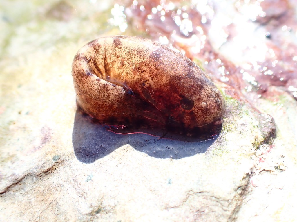 If the tide wasn’t coming in, and if I wasn’t called away by someone further up the beach finding a giant goby, I might have been able to check the slug’s underside. If I’d done that I could have seen without doubt that this was a second “Discodoris”, a two-for-one package. The underside of Geitodoris planata is fringed in brown spots, unlike the very similar sea lemon, which is all one colour.