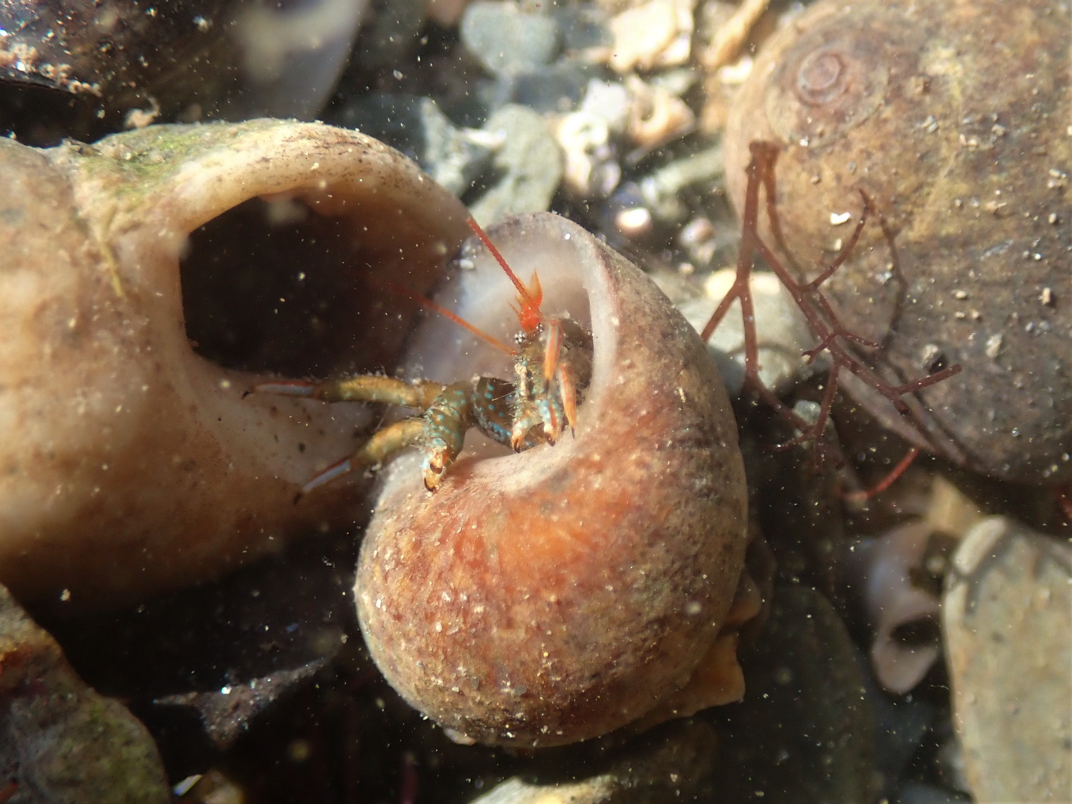 So now we have to wait and find out whether the conditions remain favourable for this little hermit crab to become a long-term resident in our rock pools.